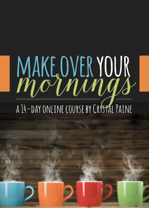 Well, The “Make Over Your Mornings” 14 day course is a program designed to help set realistic and achievable goals to help get your daily life a bit more streamlined. (At least that’s what the ad tells me!) Crystal Payne over at Money Saving Mom has designed this course to help others implement a system that works well in her home as well as others who have gone through her program.