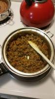 Finally it was time to add in the meat. We basically only use ground turkey for a number of reasons. The biggest one is that it is cheaper than ground beef.