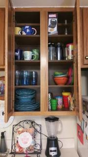 And the last stop on the organization train for the kitchen was the dishes. I can not tell you the number of glasses and cups that we had that we just didn’t need any more. Those are off to a new home as well. And with a little re-organizing I can finally get to everything I need to get to and do everything I need to do.