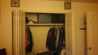 The closet. Everything I need within reach. Now I just need to straighten out the clothes a bit. |