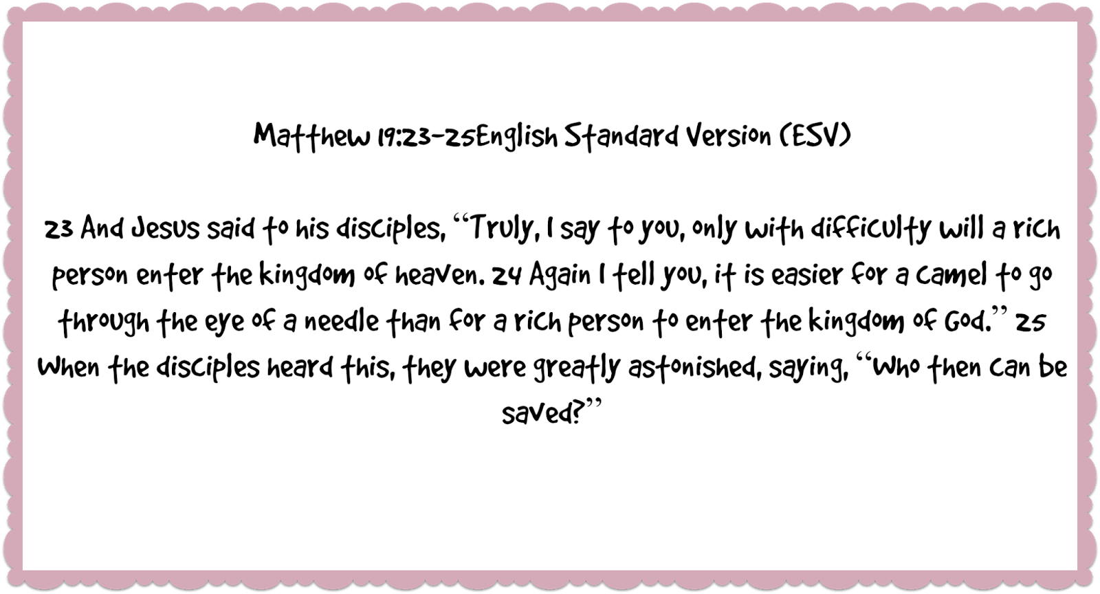 The story in Matthew continues with Jesus telling his followers just how hard it is for a rich man to enter heaven.