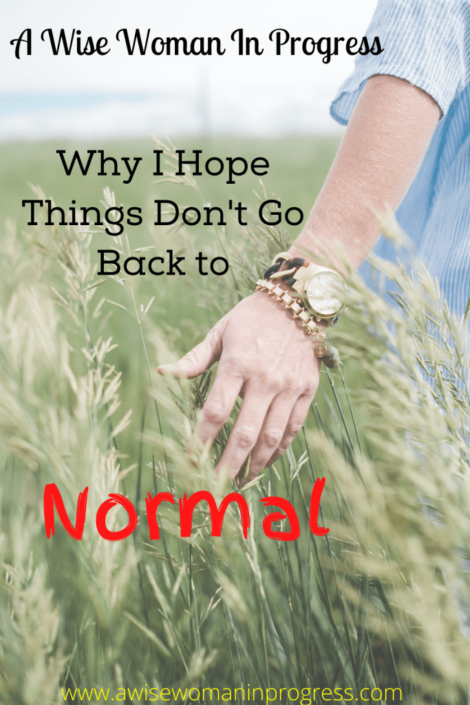 So if I don’t want things to go back to “normal” then what is it I am wanting to get to? Well, I’m glad you asked.