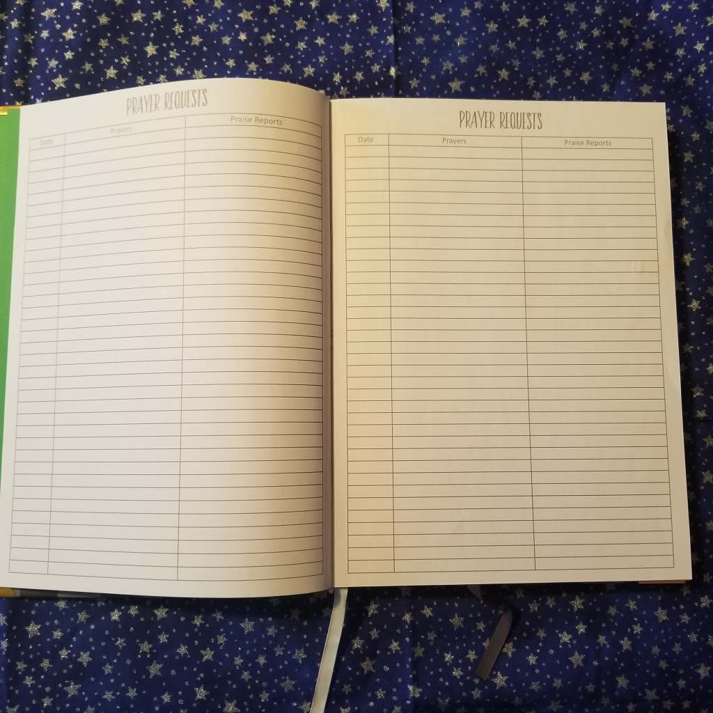 The Weekly Pages: Ok this is the part that drew me in the most to the Prayerful Planner. First of all ALL 52 Weeks are together in the same place. That right there was a huge selling point. The other thing that REALLY excited me are the pages that come at the end and beginning respectively of each week. On one side there is a week in review page. There are a few sections to go over how the week went and what improvements can be made for the better the next week. The next page is for sermon notes and a small section for weekly Bible Study. I am a HUGE note taker in church and during my daily quiet time. I generally have to keep track of ALL. THE. NOTEBOOKS. With this planner I have most of my information in one place and I have less to have to carry with me, especially when we go to church on Sunday mornings. The next pages are the weekly pages. They are time blocked from 6 AM to 9 PM which is awesome! Below there are spaces where a post it note will fit, a place for prayer journaling, And a section for what I call a “brain dump”.